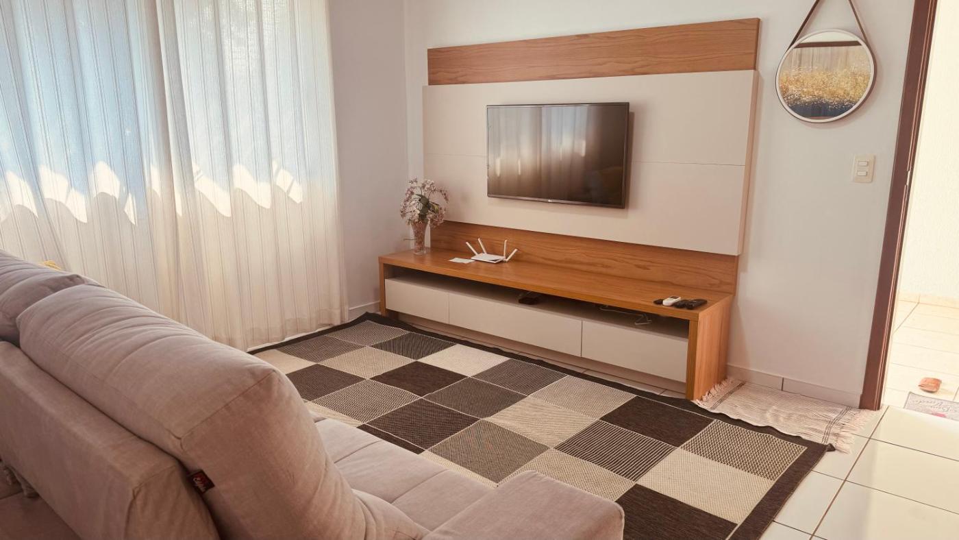 Casa de 1 Quarto. Featuring a private entrance, this air-conditioned holiday home is comprised of 1 living room, 1 separate bedroom and 1 bathroom with a shower. Guests will find a stovetop, a refrigerator, kitchenware and an oven in the fully equipped kitchen. The holiday home also has a barbecue. The holiday home offers a flat-screen TV with streaming services, a washing machine, a seating area, a dining area as well as garden views. The unit offers 5 beds and 4 futons.
